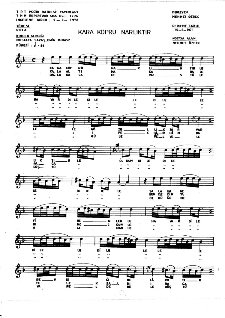 Bu türkünün notasında, sözlerinde veya örnek icrasında bir eksiklik yahut yanlışlık tespit ederseniz, e-mail ile veya WhatsApp hattından bildirim yaparak katkıda bulunabilirsiniz.