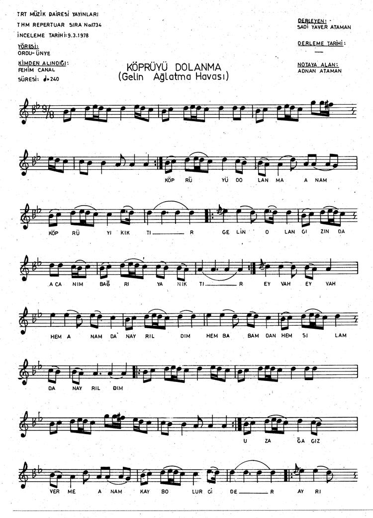 Bu türkünün notasında, sözlerinde veya örnek icrasında bir eksiklik yahut yanlışlık tespit ederseniz, e-mail ile veya WhatsApp hattından bildirim yaparak katkıda bulunabilirsiniz.