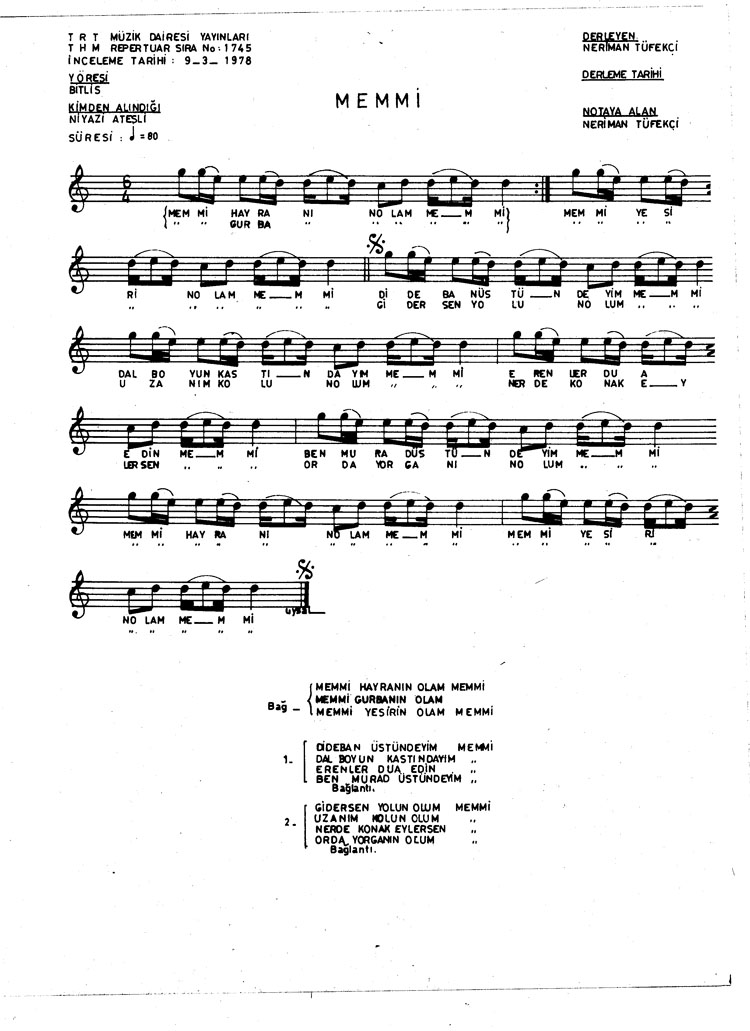 Bu türkünün notasında, sözlerinde veya örnek icrasında bir eksiklik yahut yanlışlık tespit ederseniz, e-mail ile veya WhatsApp hattından bildirim yaparak katkıda bulunabilirsiniz.