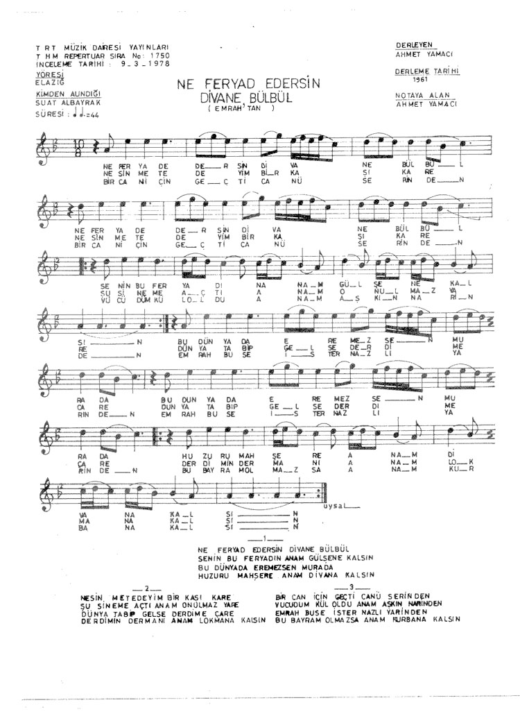 Ne feryad edersin divane bülbül (Rep.No: 1750)