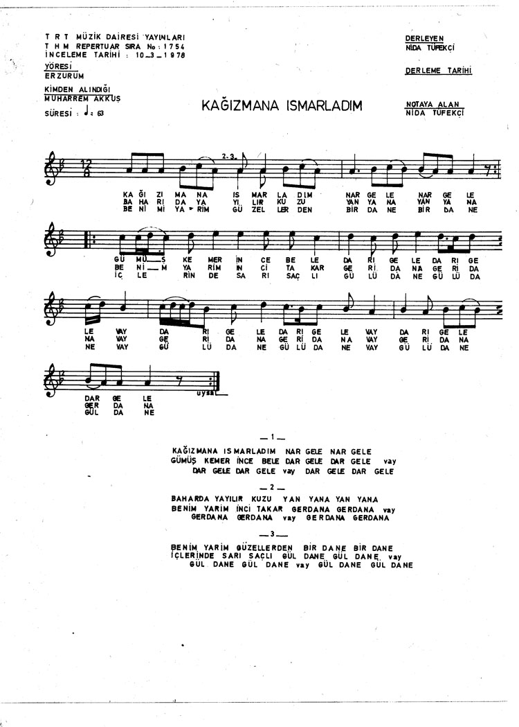 Kağızman´a ısmarladım nar gele (Rep.No: 1754)