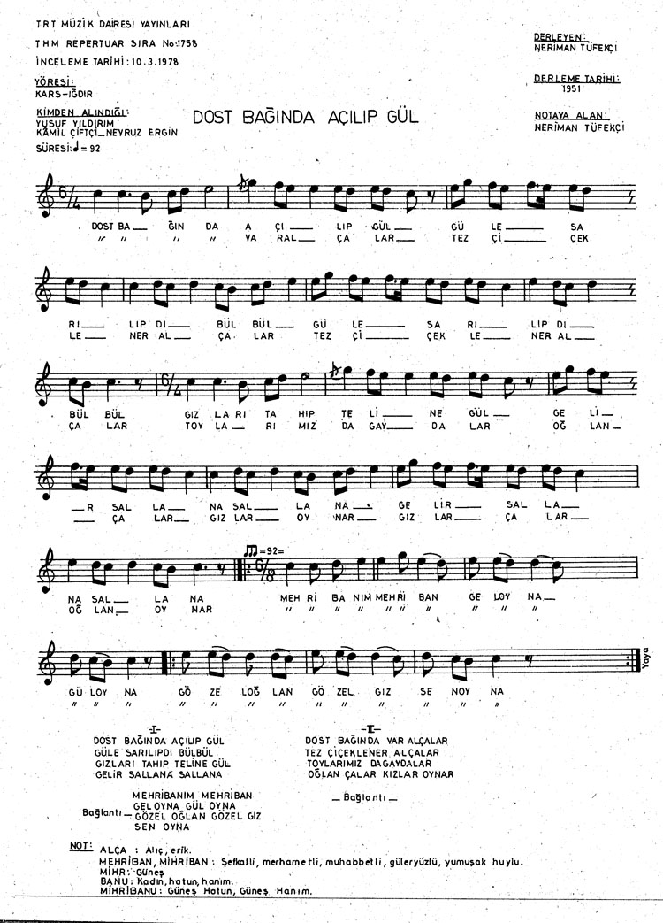 Dost bağında açılıp gül (Rep.No: 1758)