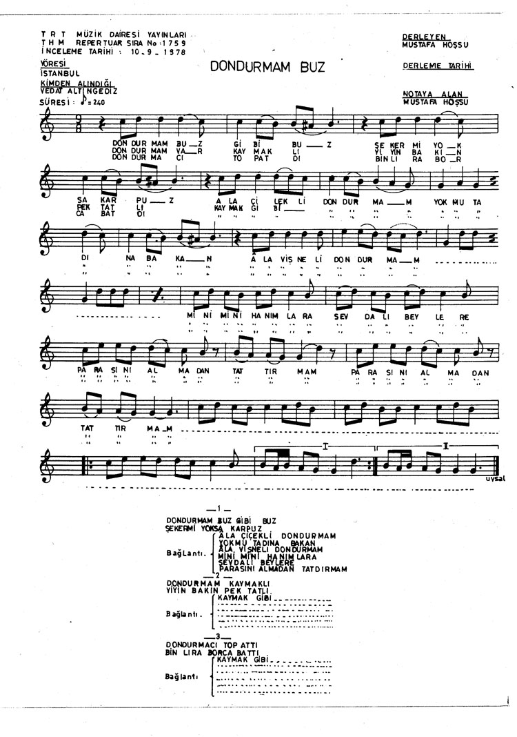 Bu türkünün notasında, sözlerinde veya örnek icrasında bir eksiklik yahut yanlışlık tespit ederseniz, e-mail ile veya WhatsApp hattından bildirim yaparak katkıda bulunabilirsiniz.