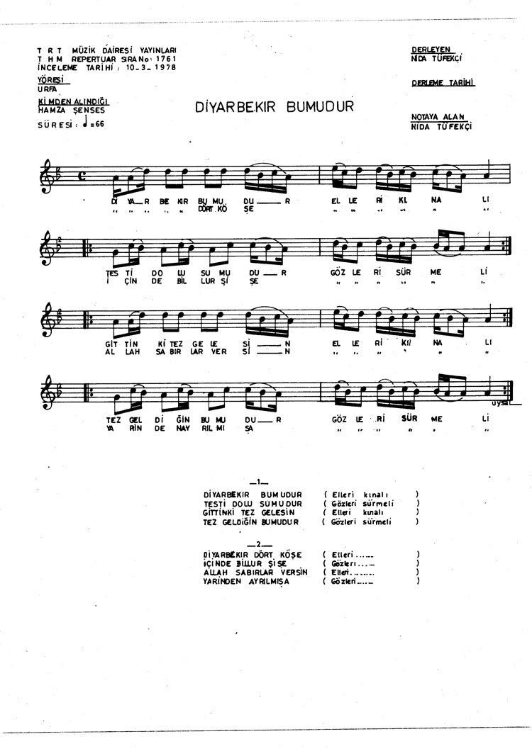 Bu türkünün notasında, sözlerinde veya örnek icrasında bir eksiklik yahut yanlışlık tespit ederseniz, e-mail ile veya WhatsApp hattından bildirim yaparak katkıda bulunabilirsiniz.