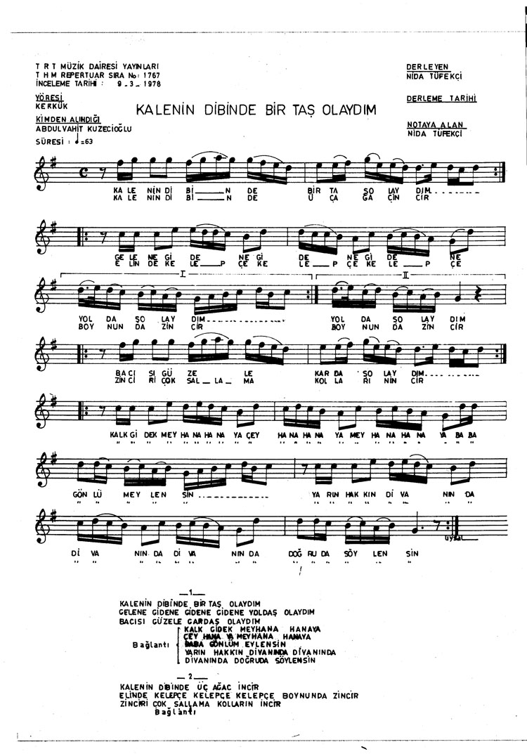 Bu türkünün notasında, sözlerinde veya örnek icrasında bir eksiklik yahut yanlışlık tespit ederseniz, e-mail ile veya WhatsApp hattından bildirim yaparak katkıda bulunabilirsiniz.