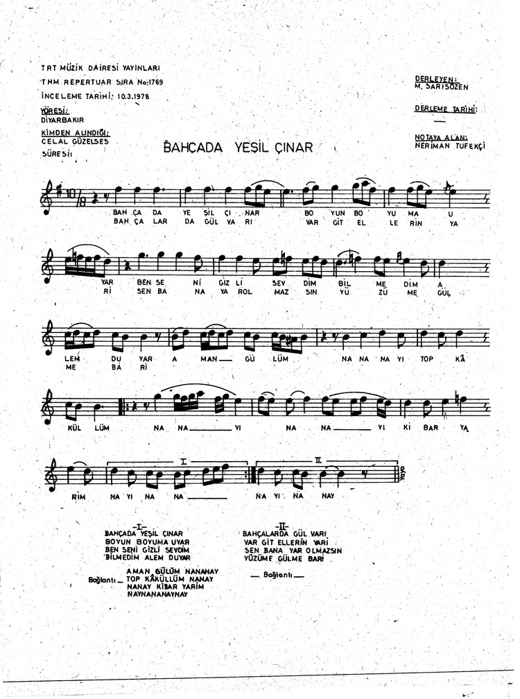 Bu türkünün notasında, sözlerinde veya örnek icrasında bir eksiklik yahut yanlışlık tespit ederseniz, e-mail ile veya WhatsApp hattından bildirim yaparak katkıda bulunabilirsiniz.