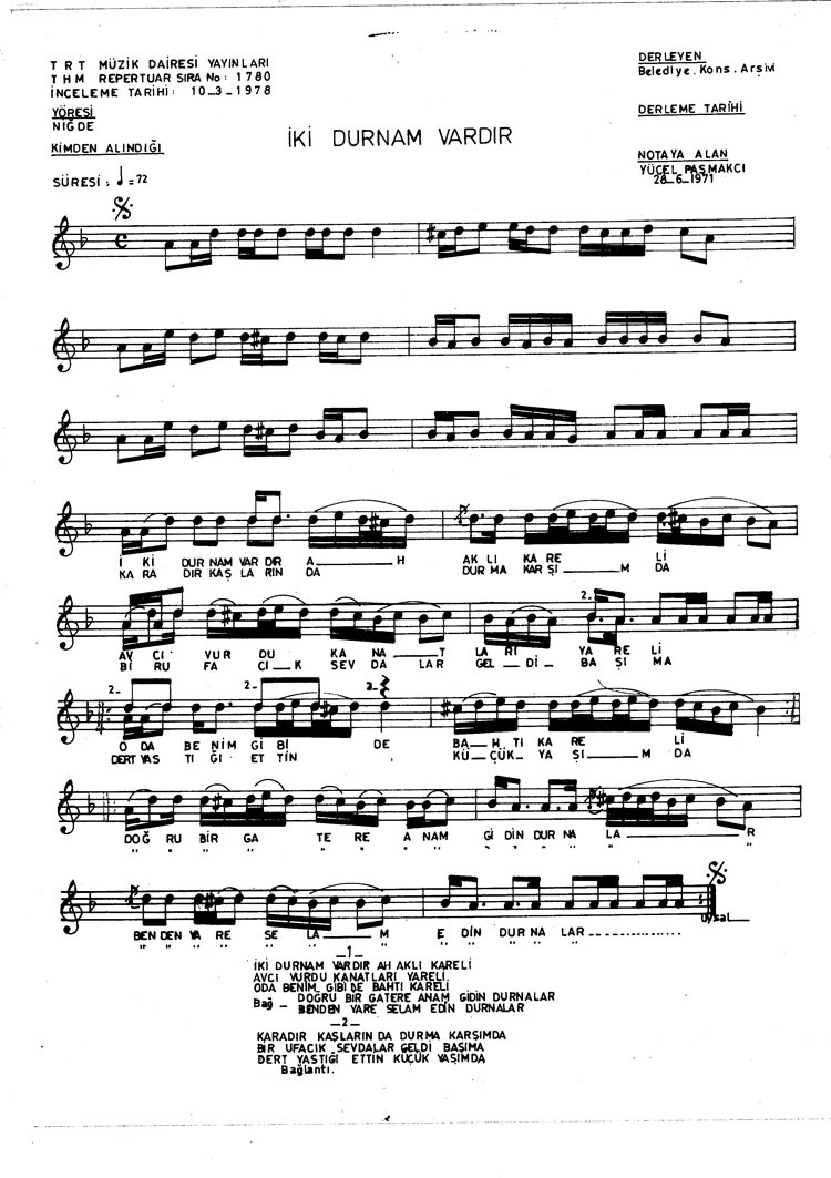 İki durnam vardır aklı kareli (Rep.No: 1780)