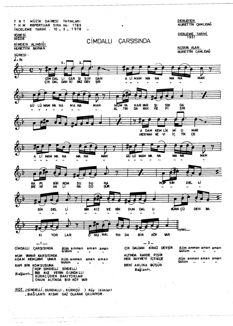 Bu türkünün notasında, sözlerinde veya örnek icrasında bir eksiklik yahut yanlışlık tespit ederseniz, e-mail ile veya WhatsApp hattından bildirim yaparak katkıda bulunabilirsiniz.