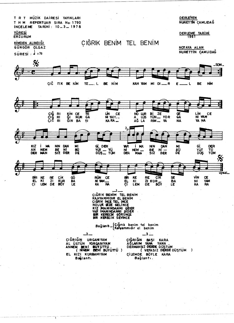 Bu türkünün notasında, sözlerinde veya örnek icrasında bir eksiklik yahut yanlışlık tespit ederseniz, e-mail ile veya WhatsApp hattından bildirim yaparak katkıda bulunabilirsiniz.