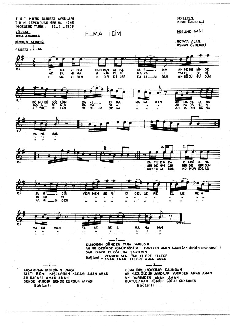 Elma idim günden yana yarıldım (Rep.No: 1795)