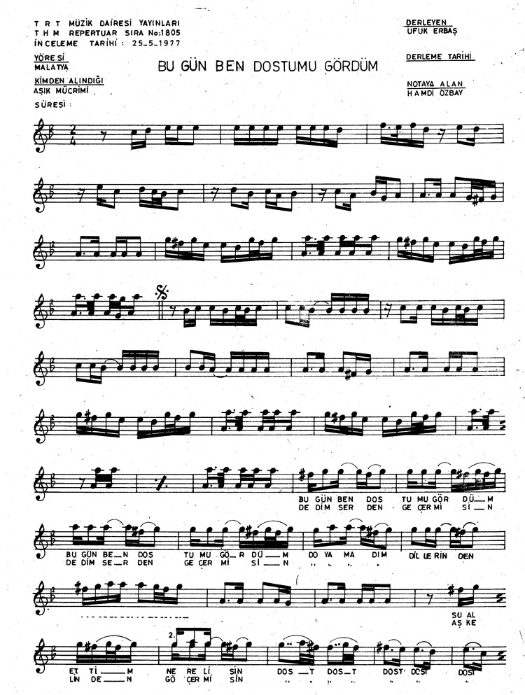 Bu türkünün notasında, sözlerinde veya örnek icrasında bir eksiklik yahut yanlışlık tespit ederseniz, e-mail ile veya WhatsApp hattından bildirim yaparak katkıda bulunabilirsiniz.