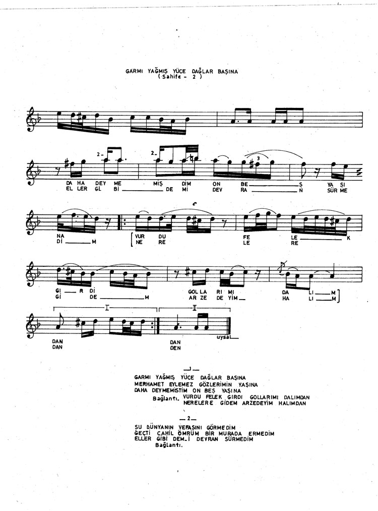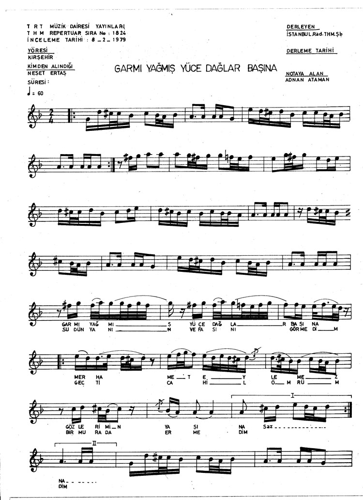 Gar mı yağmış yüce dağlar başına (Rep.No: 1824)