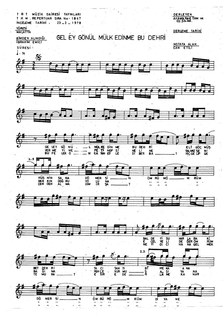 Gel ey gönül mülk edinme bu dehri (Rep.No: 1847)