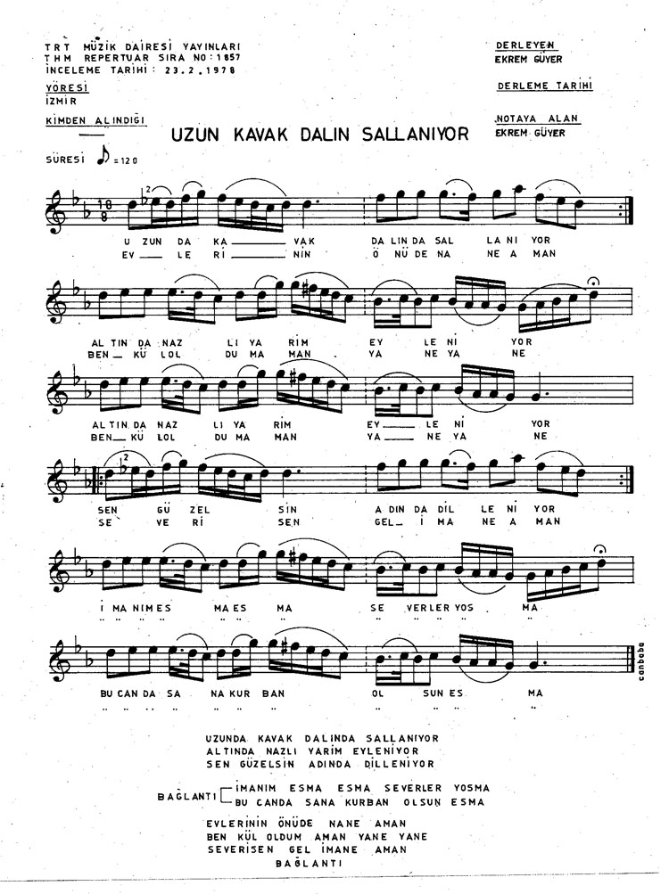 Uzun da kavak dalında sallanıyor (Rep.No: 1857)