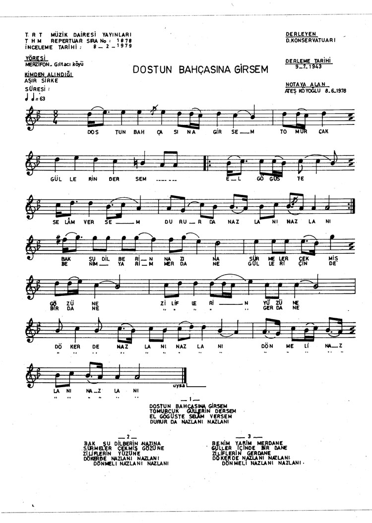 Bu türkünün notasında, sözlerinde veya örnek icrasında bir eksiklik yahut yanlışlık tespit ederseniz, e-mail ile veya WhatsApp hattından bildirim yaparak katkıda bulunabilirsiniz.