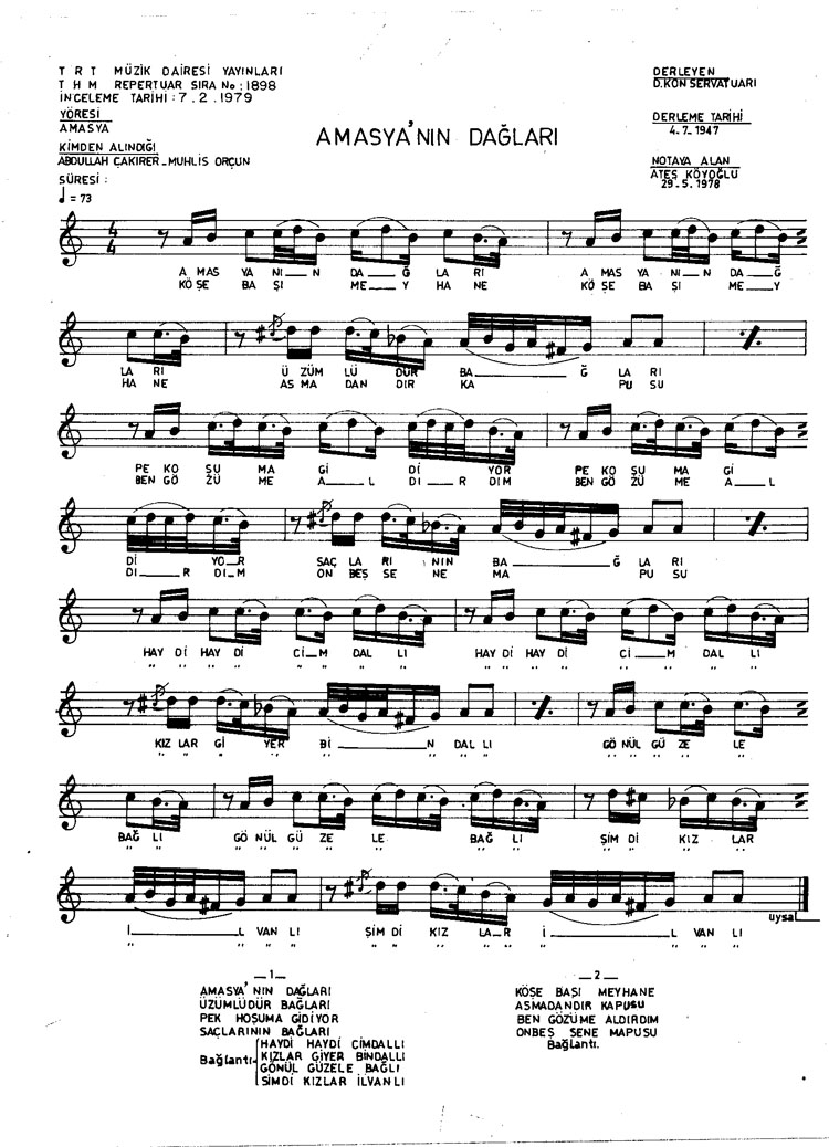 Bu türkünün notasında, sözlerinde veya örnek icrasında bir eksiklik yahut yanlışlık tespit ederseniz, e-mail ile veya WhatsApp hattından bildirim yaparak katkıda bulunabilirsiniz.