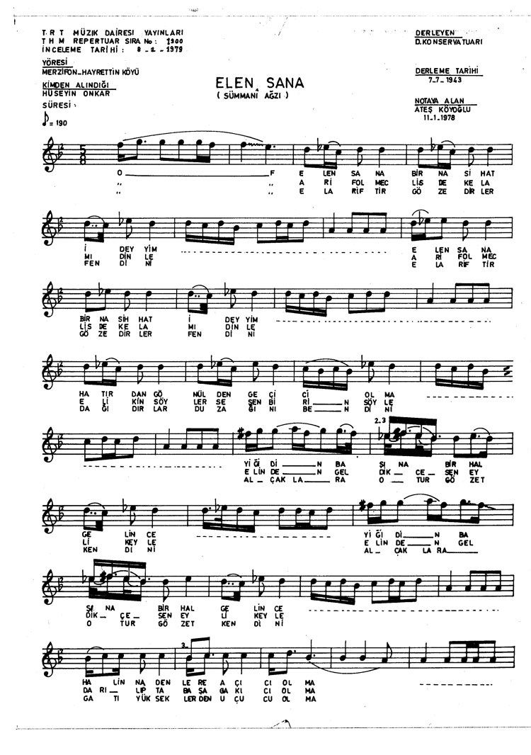Bu türkünün notasında, sözlerinde veya örnek icrasında bir eksiklik yahut yanlışlık tespit ederseniz, e-mail ile veya WhatsApp hattından bildirim yaparak katkıda bulunabilirsiniz.