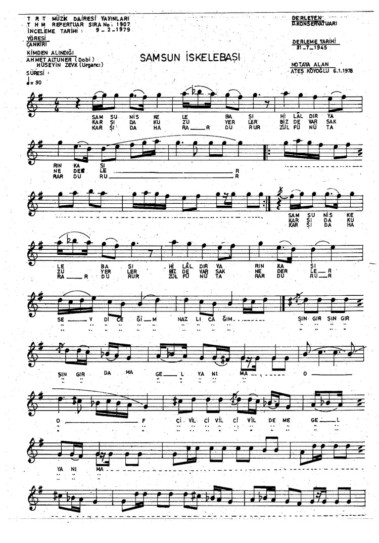 Bu türkünün notasında, sözlerinde veya örnek icrasında bir eksiklik yahut yanlışlık tespit ederseniz, e-mail ile veya WhatsApp hattından bildirim yaparak katkıda bulunabilirsiniz.