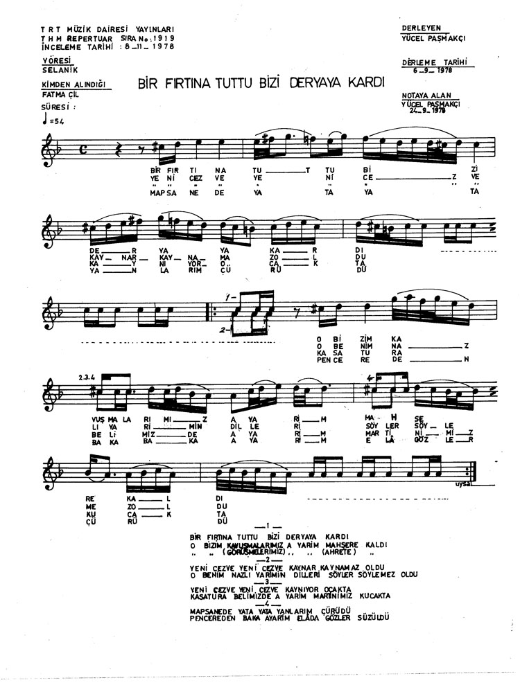 Bir fırtına tuttu bizi deryaya kardı (Rep.No: 1919)