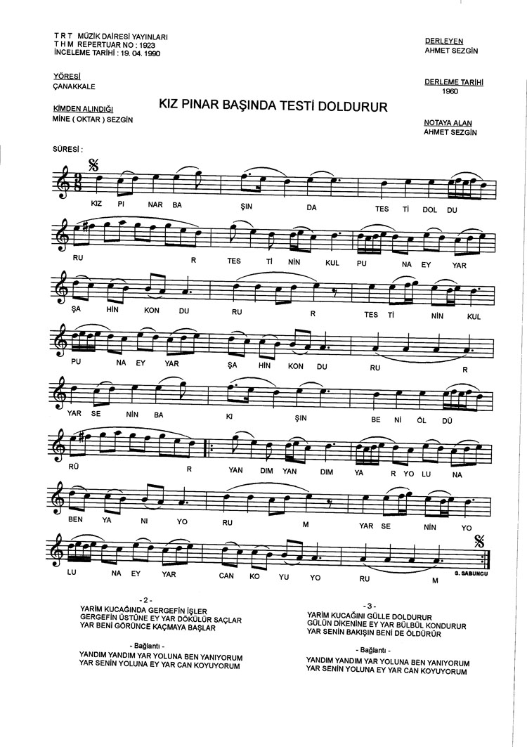 Bu türkünün notasında, sözlerinde veya örnek icrasında bir eksiklik yahut yanlışlık tespit ederseniz, e-mail ile veya WhatsApp hattından bildirim yaparak katkıda bulunabilirsiniz.