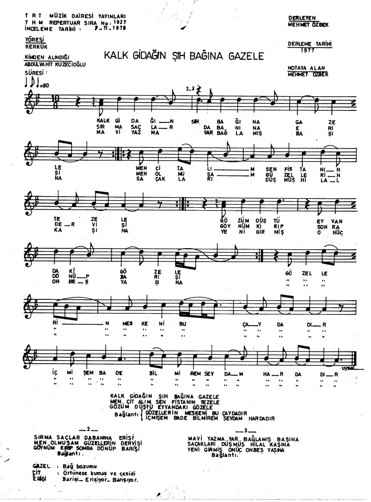 Bu türkünün notasında, sözlerinde veya örnek icrasında bir eksiklik yahut yanlışlık tespit ederseniz, e-mail ile veya WhatsApp hattından bildirim yaparak katkıda bulunabilirsiniz.