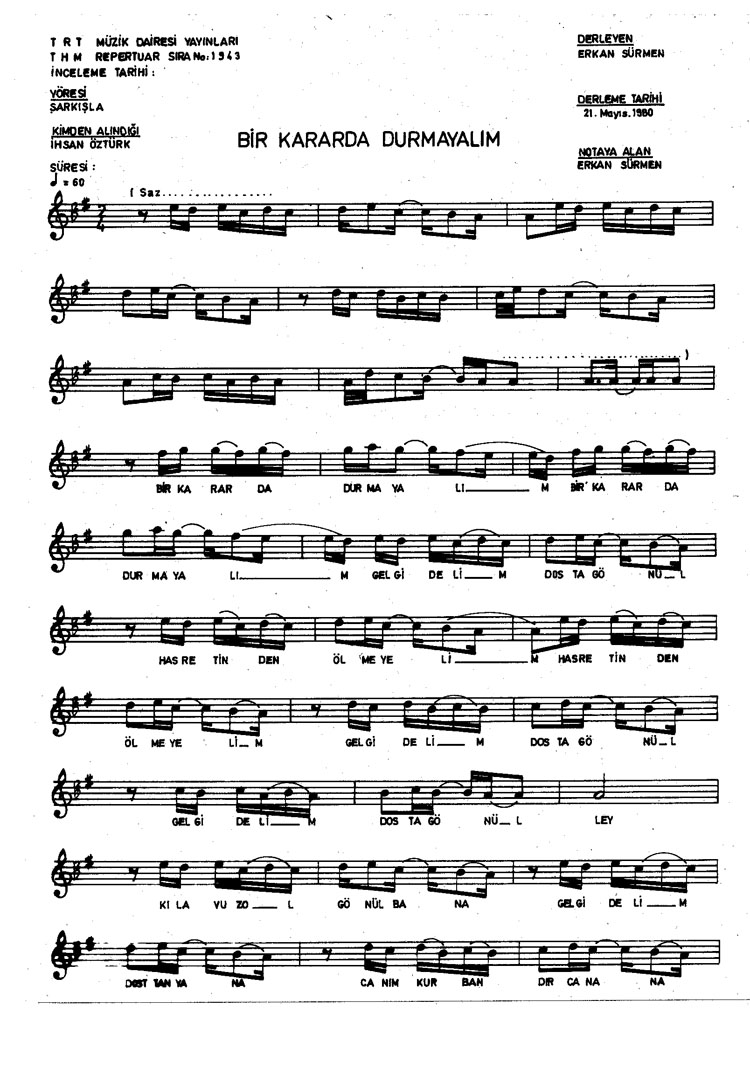 Bu türkünün notasında, sözlerinde veya örnek icrasında bir eksiklik yahut yanlışlık tespit ederseniz, e-mail ile veya WhatsApp hattından bildirim yaparak katkıda bulunabilirsiniz.