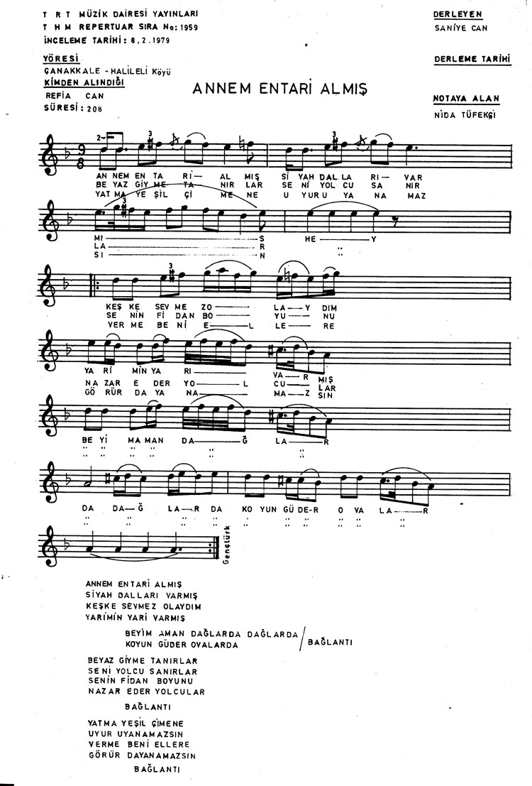Bu türkünün notasında, sözlerinde veya örnek icrasında bir eksiklik yahut yanlışlık tespit ederseniz, e-mail ile veya WhatsApp hattından bildirim yaparak katkıda bulunabilirsiniz.