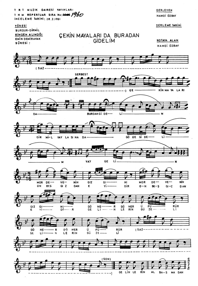 Bu türkünün notasında, sözlerinde veya örnek icrasında bir eksiklik yahut yanlışlık tespit ederseniz, e-mail ile veya WhatsApp hattından bildirim yaparak katkıda bulunabilirsiniz.