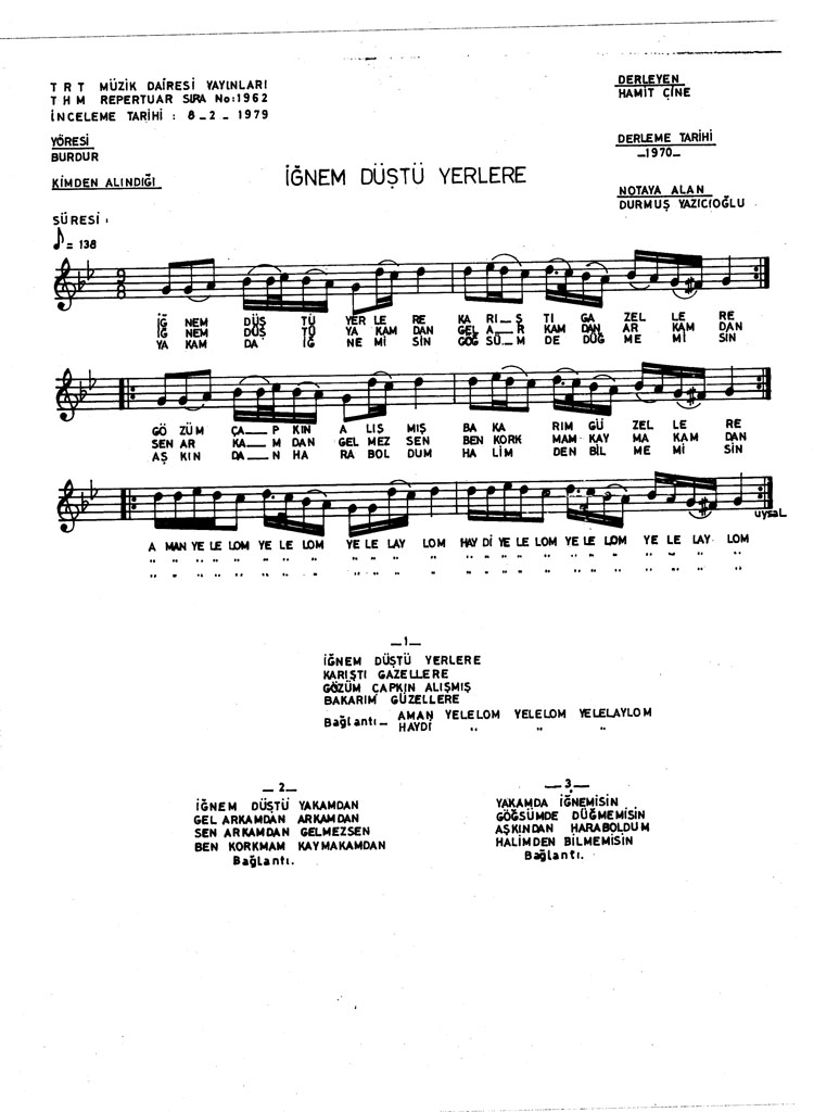 Bu türkünün notasında, sözlerinde veya örnek icrasında bir eksiklik yahut yanlışlık tespit ederseniz, e-mail ile veya WhatsApp hattından bildirim yaparak katkıda bulunabilirsiniz.