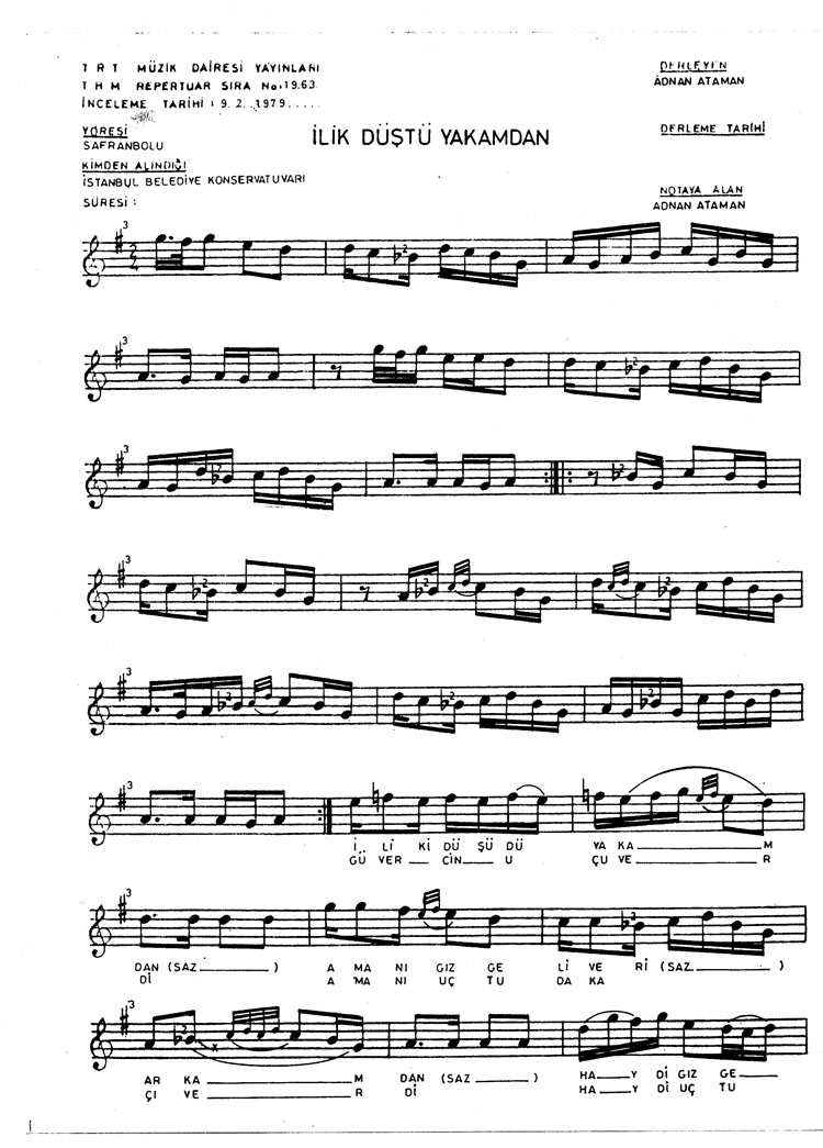 Bu türkünün notasında, sözlerinde veya örnek icrasında bir eksiklik yahut yanlışlık tespit ederseniz, e-mail ile veya WhatsApp hattından bildirim yaparak katkıda bulunabilirsiniz.