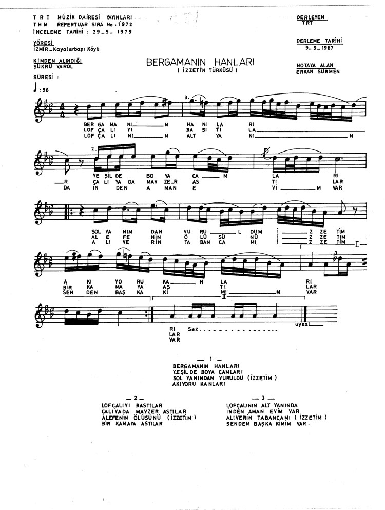Bu türkünün notasında, sözlerinde veya örnek icrasında bir eksiklik yahut yanlışlık tespit ederseniz, e-mail ile veya WhatsApp hattından bildirim yaparak katkıda bulunabilirsiniz.