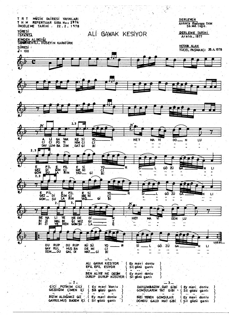 Bu türkünün notasında, sözlerinde veya örnek icrasında bir eksiklik yahut yanlışlık tespit ederseniz, e-mail ile veya WhatsApp hattından bildirim yaparak katkıda bulunabilirsiniz.