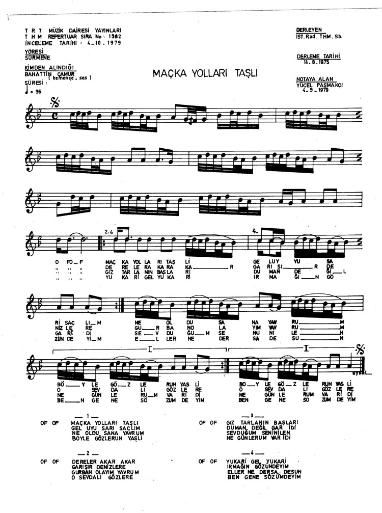 Bu türkünün notasında, sözlerinde veya örnek icrasında bir eksiklik yahut yanlışlık tespit ederseniz, e-mail ile veya WhatsApp hattından bildirim yaparak katkıda bulunabilirsiniz.