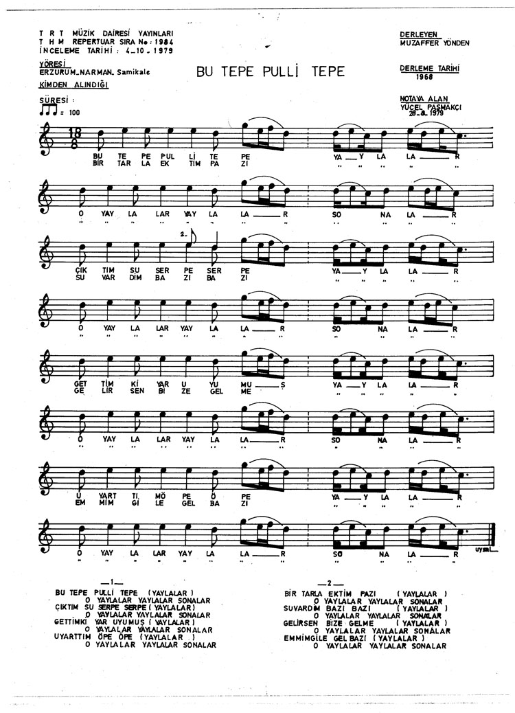 Bu türkünün notasında, sözlerinde veya örnek icrasında bir eksiklik yahut yanlışlık tespit ederseniz, e-mail ile veya WhatsApp hattından bildirim yaparak katkıda bulunabilirsiniz.
