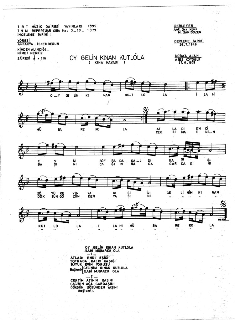 Oy gelin kınan kutlu ola (Rep.No: 1995)
