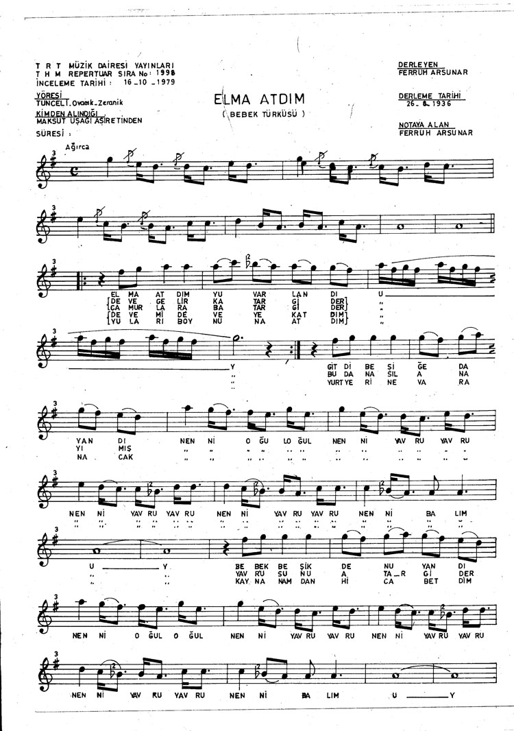 Bu türkünün notasında, sözlerinde veya örnek icrasında bir eksiklik yahut yanlışlık tespit ederseniz, e-mail ile veya WhatsApp hattından bildirim yaparak katkıda bulunabilirsiniz.