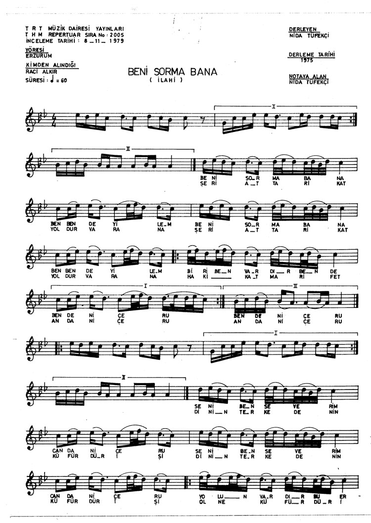 Bu türkünün notasında, sözlerinde veya örnek icrasında bir eksiklik yahut yanlışlık tespit ederseniz, e-mail ile veya WhatsApp hattından bildirim yaparak katkıda bulunabilirsiniz.