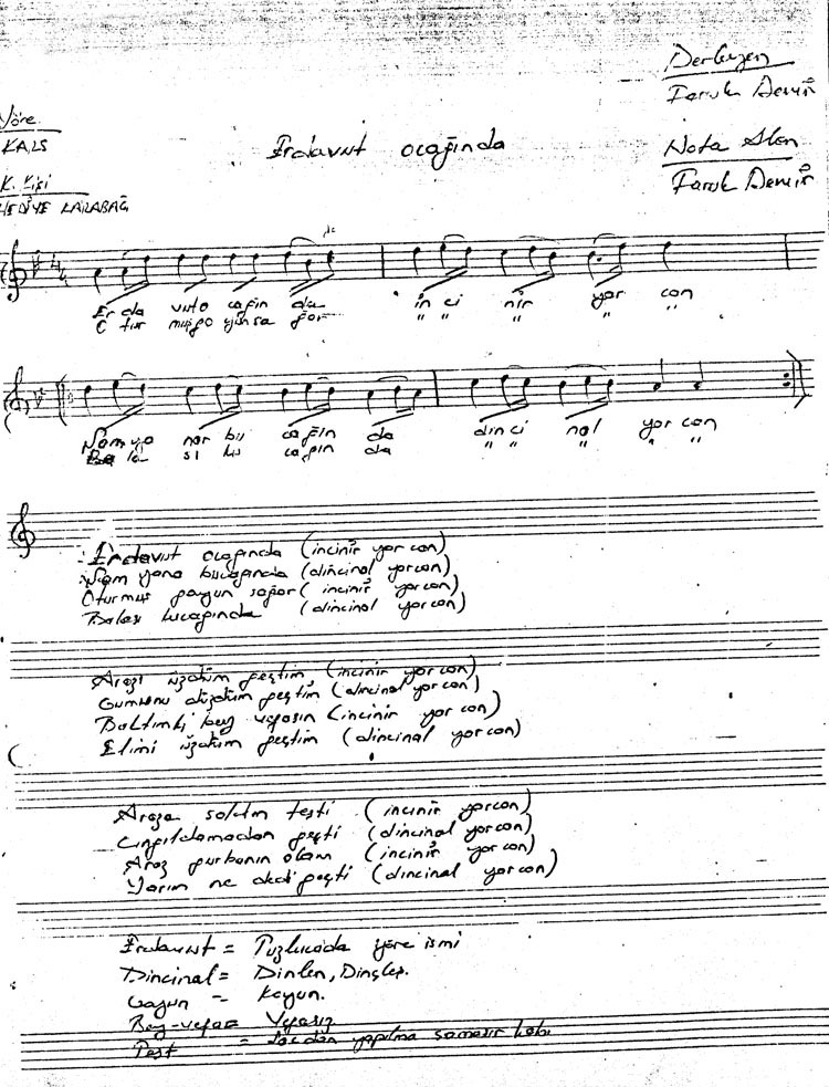 Bu türkünün notasında, sözlerinde veya örnek icrasında bir eksiklik yahut yanlışlık tespit ederseniz, e-mail ile veya WhatsApp hattından bildirim yaparak katkıda bulunabilirsiniz.