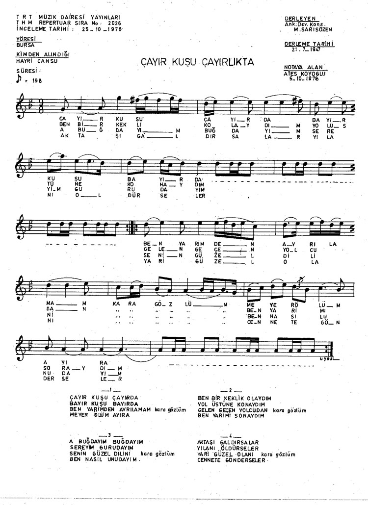 Bu türkünün notasında, sözlerinde veya örnek icrasında bir eksiklik yahut yanlışlık tespit ederseniz, e-mail ile veya WhatsApp hattından bildirim yaparak katkıda bulunabilirsiniz.