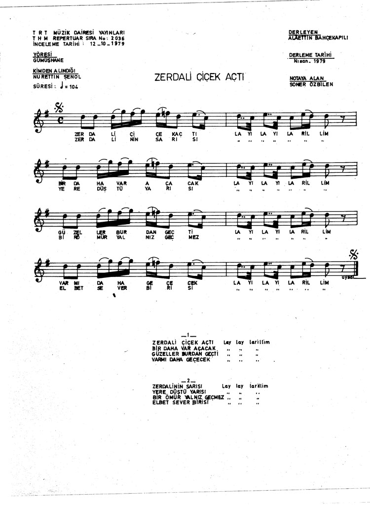 Bu türkünün notasında, sözlerinde veya örnek icrasında bir eksiklik yahut yanlışlık tespit ederseniz, e-mail ile veya WhatsApp hattından bildirim yaparak katkıda bulunabilirsiniz.