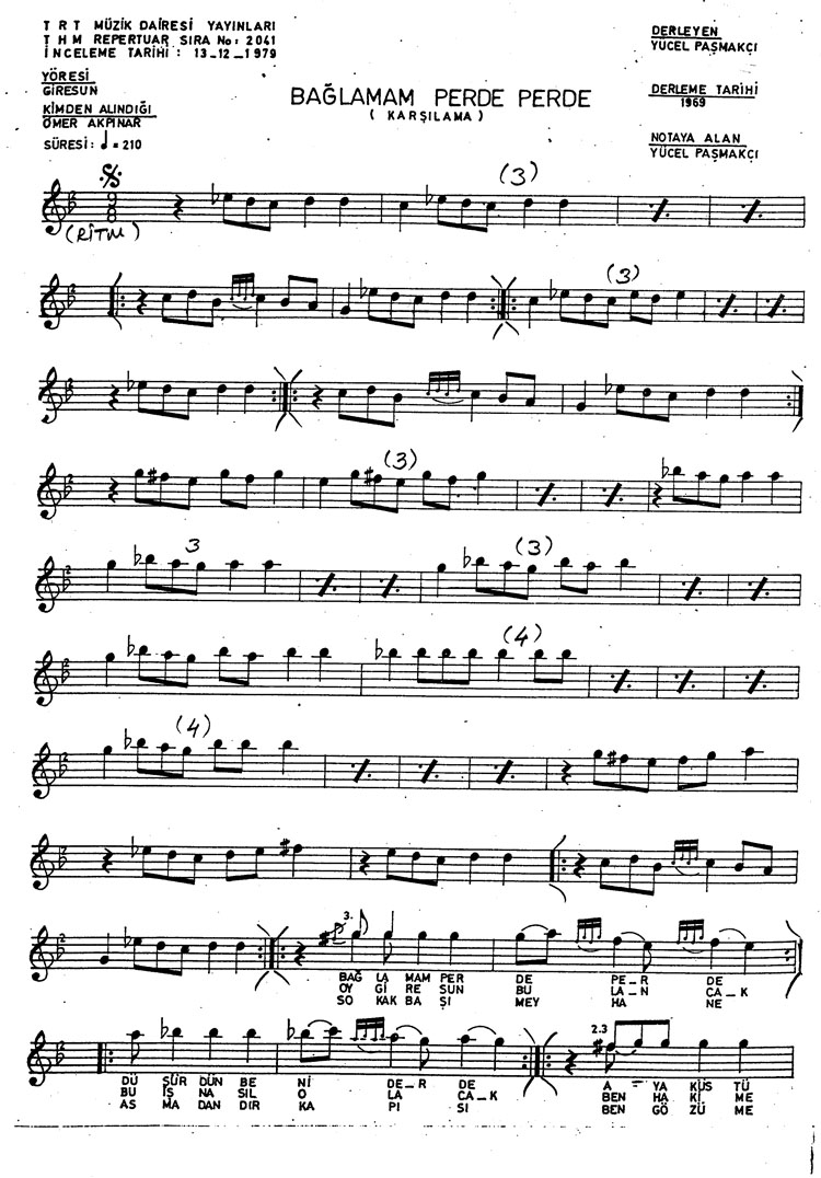 Bu türkünün notasında, sözlerinde veya örnek icrasında bir eksiklik yahut yanlışlık tespit ederseniz, e-mail ile veya WhatsApp hattından bildirim yaparak katkıda bulunabilirsiniz.