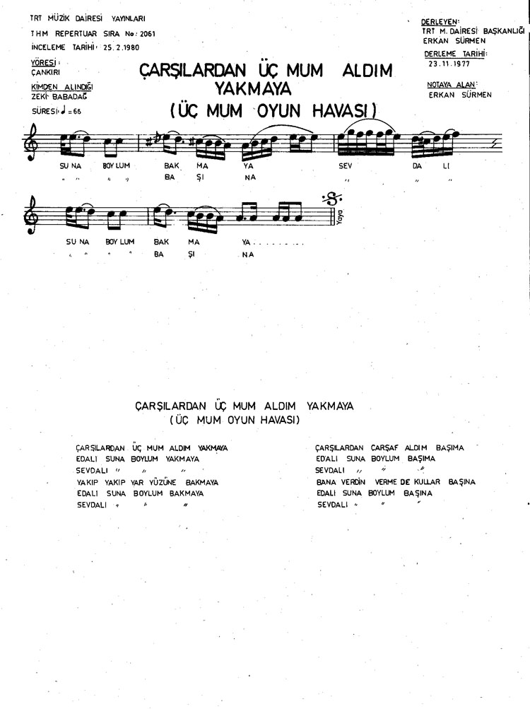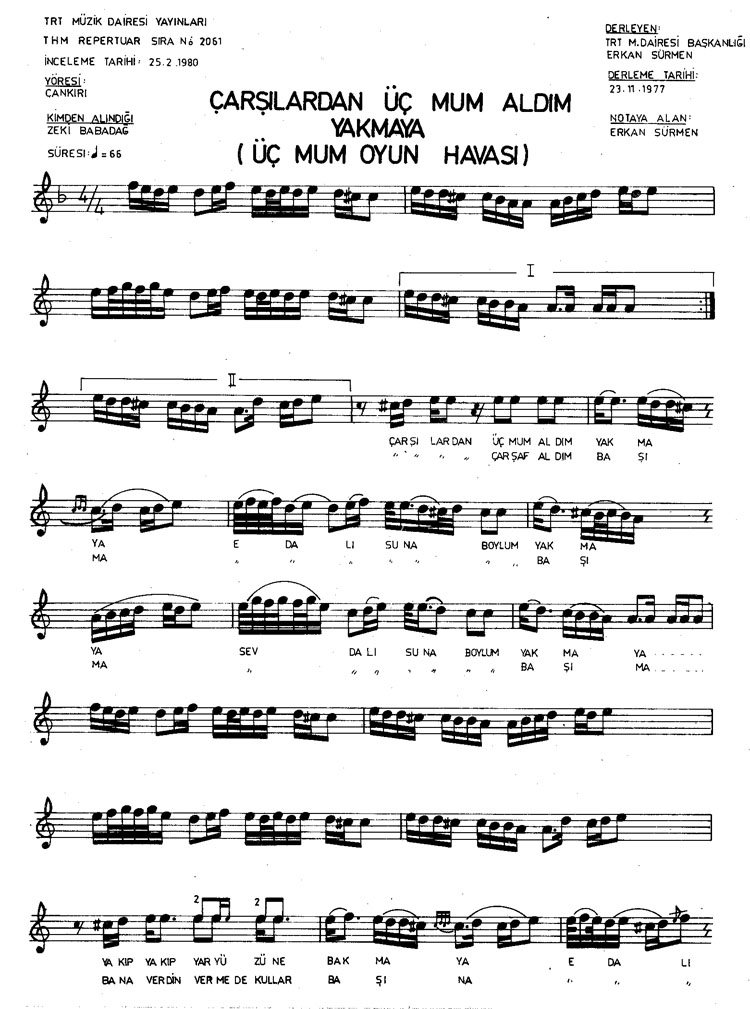 Çarşılardan üç mum aldım yakmaya (Rep.No: 2061)
