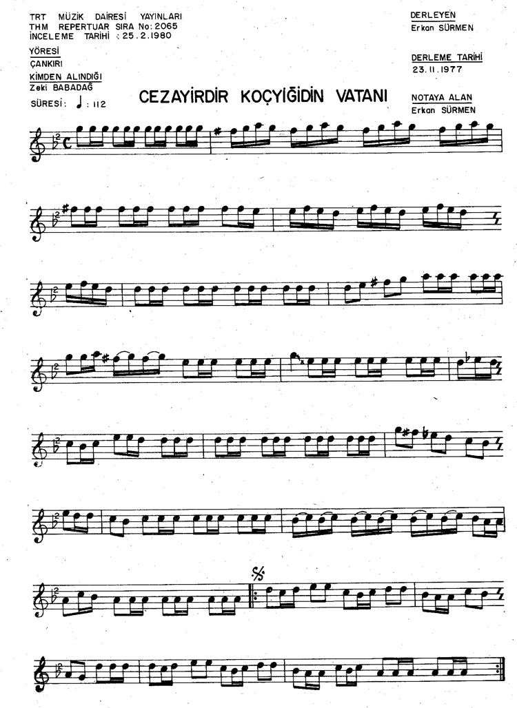 Bu türkünün notasında, sözlerinde veya örnek icrasında bir eksiklik yahut yanlışlık tespit ederseniz, e-mail ile veya WhatsApp hattından bildirim yaparak katkıda bulunabilirsiniz.