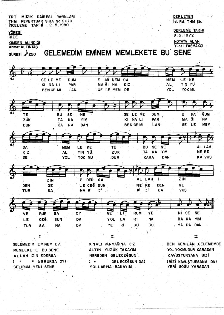 Bu türkünün notasında, sözlerinde veya örnek icrasında bir eksiklik yahut yanlışlık tespit ederseniz, e-mail ile veya WhatsApp hattından bildirim yaparak katkıda bulunabilirsiniz.