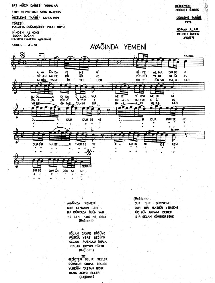 Bu türkünün notasında, sözlerinde veya örnek icrasında bir eksiklik yahut yanlışlık tespit ederseniz, e-mail ile veya WhatsApp hattından bildirim yaparak katkıda bulunabilirsiniz.