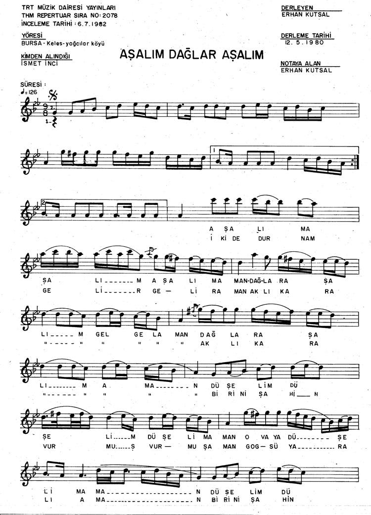 Aşalım aşalım dağlar aşalım (Rep.No: 2078)