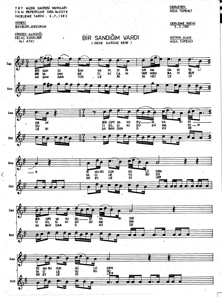 Bir sandığım vardır sırmadan telden (Rep.No: 2079)