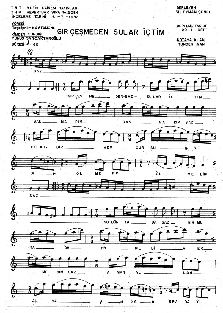 Gır çeşmeden sular içtim ganmadım (Rep.No: 2084)