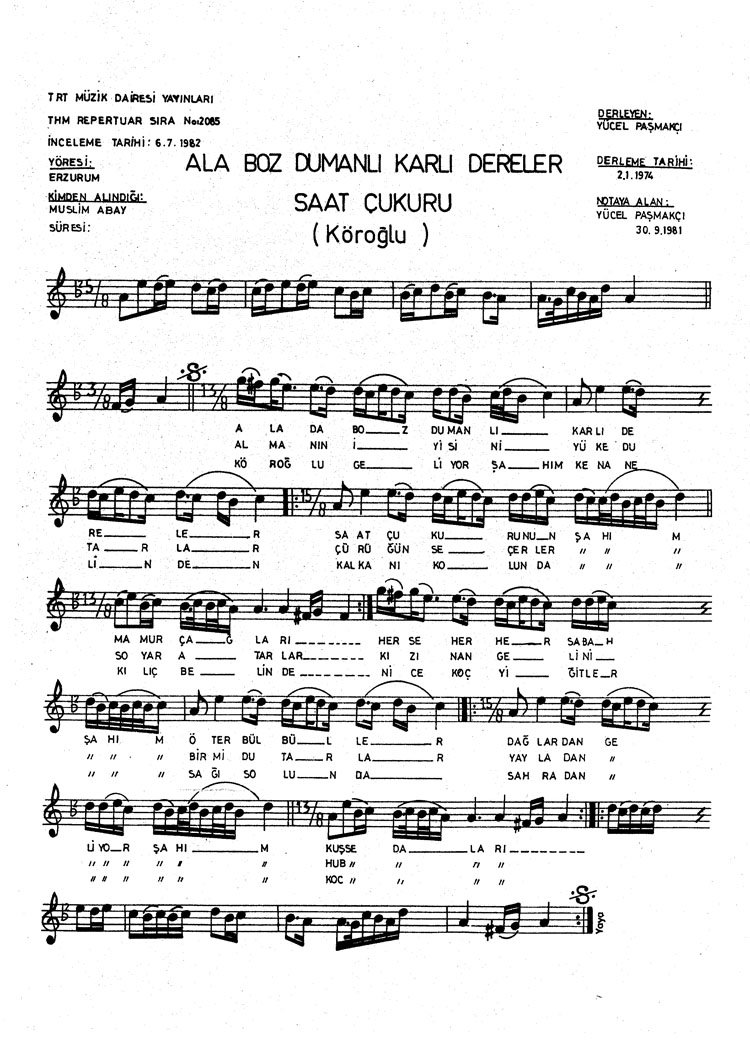 Bu türkünün notasında, sözlerinde veya örnek icrasında bir eksiklik yahut yanlışlık tespit ederseniz, e-mail ile veya WhatsApp hattından bildirim yaparak katkıda bulunabilirsiniz.