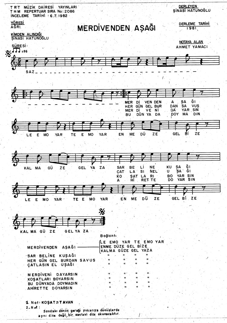 Bu türkünün notasında, sözlerinde veya örnek icrasında bir eksiklik yahut yanlışlık tespit ederseniz, e-mail ile veya WhatsApp hattından bildirim yaparak katkıda bulunabilirsiniz.
